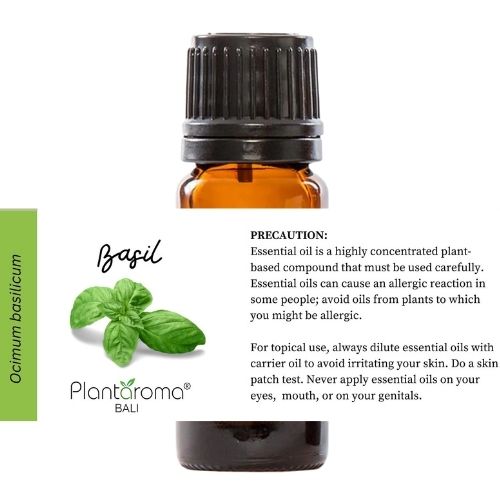 Basil essential oil is extracted from the leaves of the basil plant (Ocimum basilicum) and distilled from the leaves and flowering tops of the basil plant. Its primary active components include linalool, methyl chavicol (estragole), and eugenol, which contribute to its distinctive aroma and therapeutic qualities. Basil has a sweet and herbaceous scent.