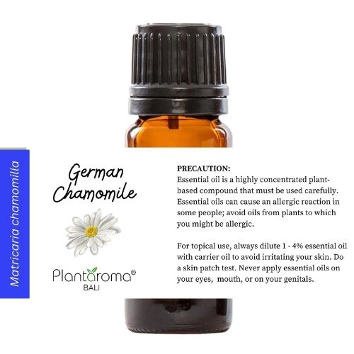 German chamomile (scientific name Matricaria chamomilla or Chamomilla recutita) is a medicinal herb native to Europe and parts of Asia. Distilled from the flowers of the plant, German chamomile essential oil is known for its deep blue hue, which comes from a chemical compound called chamazulene.